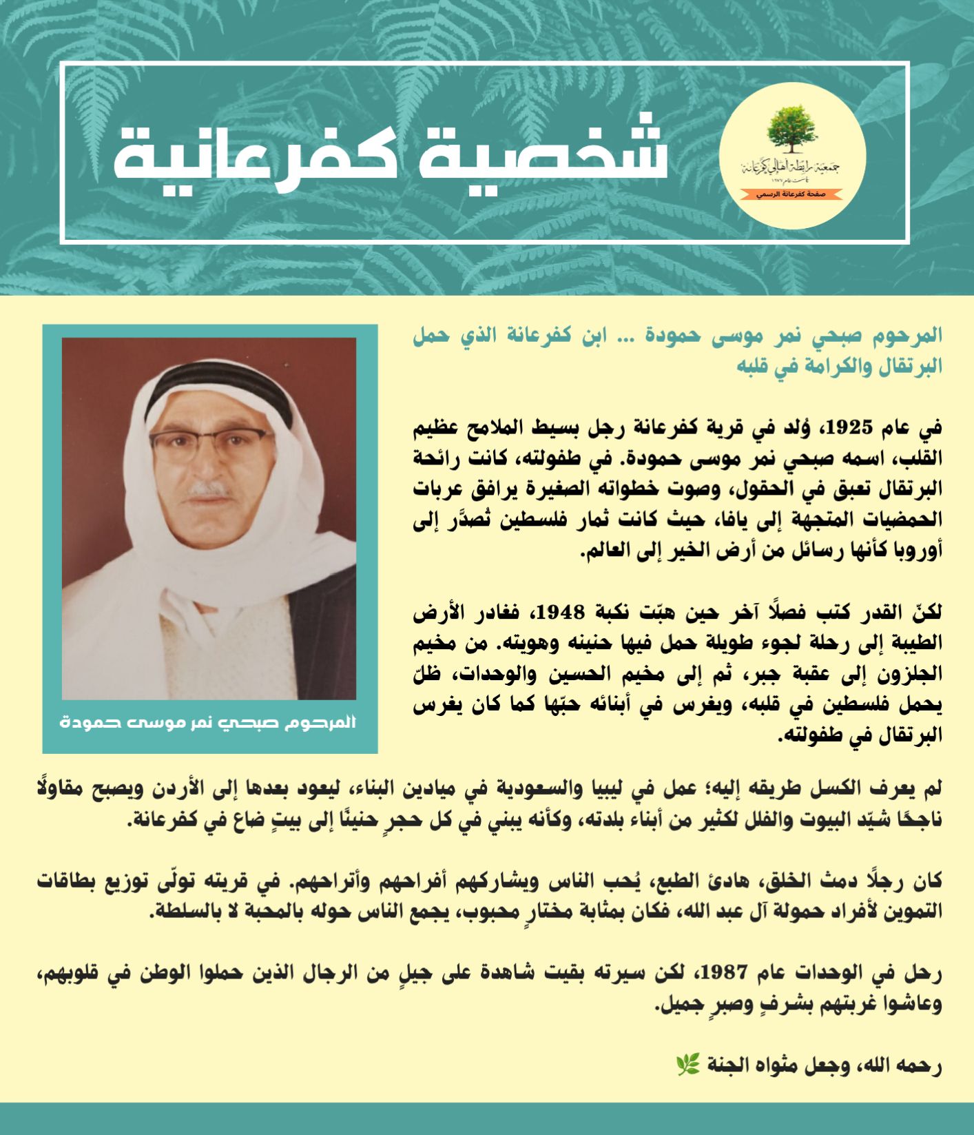 المرحوم صبحي نمر موسى حمودة … ابن كفرعانة الذي حمل البرتقال والكرامة في قلبه